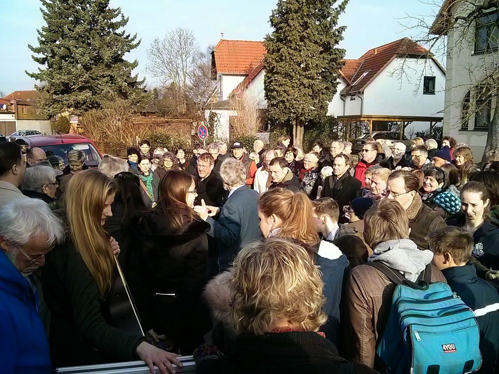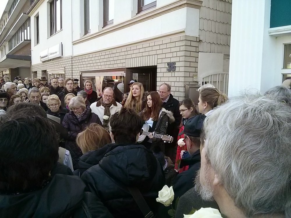Anwesend waren als die Initiatoren Schüler und Lehrer der Immanuel-Kant-Schule sowie Nachkommen der beiden Opfer nationalsozialistischer Gewalt und Vertreter der Stadt Reinfeld.