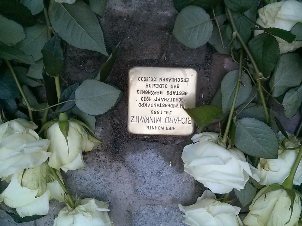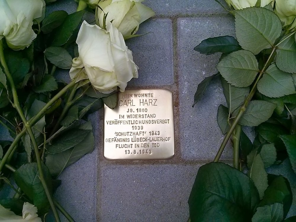 Ort des Gedenkens an die beiden Reinfelder Opfer der Nazidiktatur ist jeweils der Gehweg vor ihren damaligen Wohnhäusern Carl-Harz-Straße 6 für Carl Harz und Paul-von-Schoenaich-Straße 36 für Richard Minkwitz.