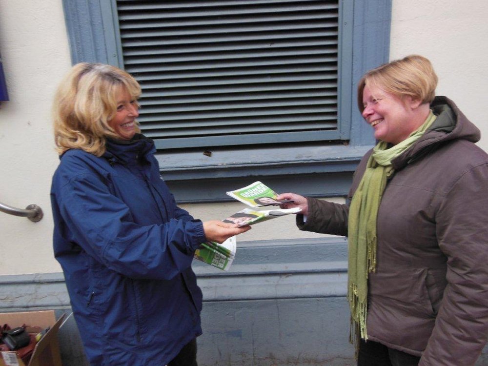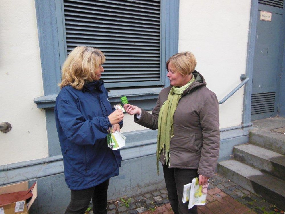 Zwei Tage vor der Wahl konnten wir in Reinfeld wieder einmal promimenten Besuch begrüßen. Marlies Fritzen, Landesvorsitzende der Grünen in Schleswig Holstein, hatte sich schon ganz früh auf den Weg gemacht, um uns bei der Verteilung von Informationsmaterial zu unterstützen. Bei dieser Aktion vor dem Bahnhof kam es immer wieder zu interessanten Diskussionen mit Pendlern, die noch ein paar Minuten Zeit bis zum Eintreffen ihres Zuges hatten. Und selbst einige ganz Eilige riefen doch noch eben im Vorbeilaufen:"Ich brauche keine Informationen mehr, ich wähl euch sowieso" Kein Wunder, dass die Stimmung gut war!