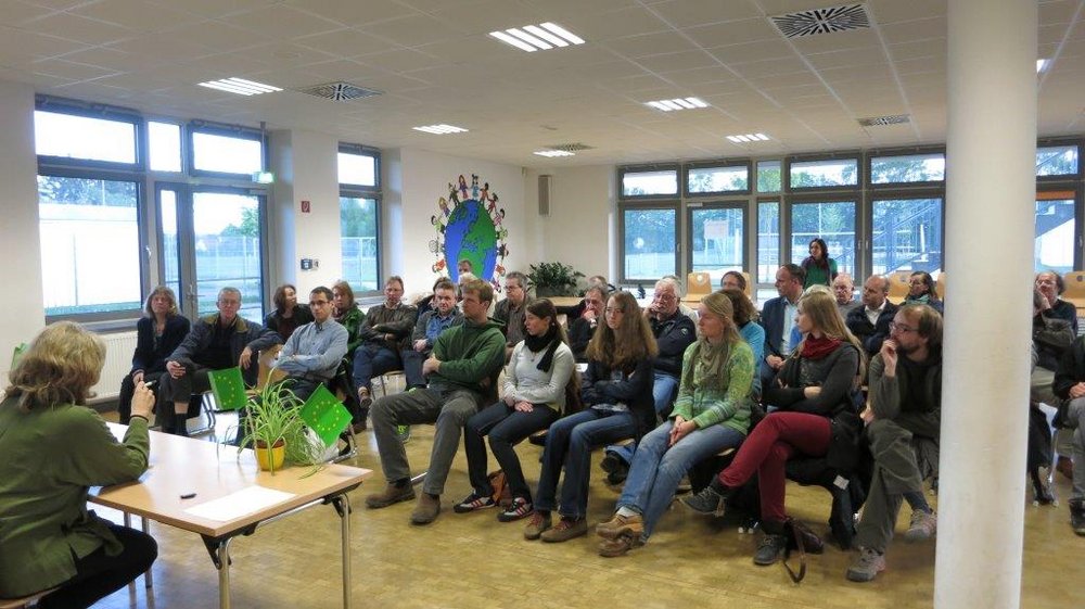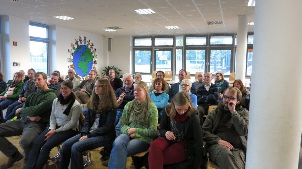 Die etwa 40 Personen in der Mensa der Immanuel-Kant-Schule verfolgten die Ausführungen gespannt und diskutierten anschließend angeregt. „Es geht aber auch um Transparenz, Verbraucherrechte und demokratischer Legitimierung, die wir nicht einfach zugunsten von Industrie-Interessen über Bord werfen sollten.“ wurde aus dem Publikum hinzugefügt.