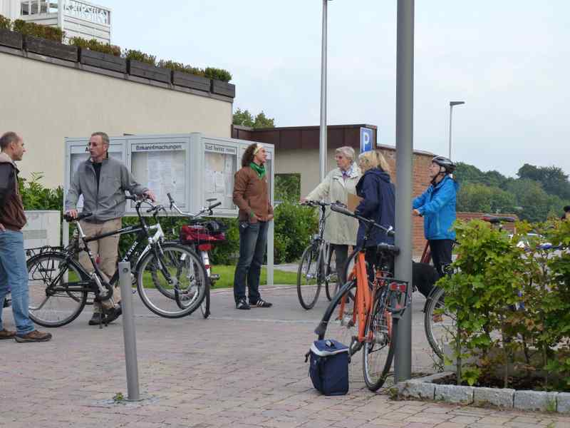 Pünktlich zum Start unserer politischen Fahrradtour, die von unserer Fraktionsvorsitzenden Ines Knoop-Hille engagiert vorbereitet worden war, zeigte sich die Sonne am Reinfelder Himmel. Gemeinsam mit einigen Reinfelder BürgerInnen starteten die grünen Kommunalpolitiker am Rathaus zu einer Rundtour zu Brennpunkten Reinfelder Kommunalpolitik.