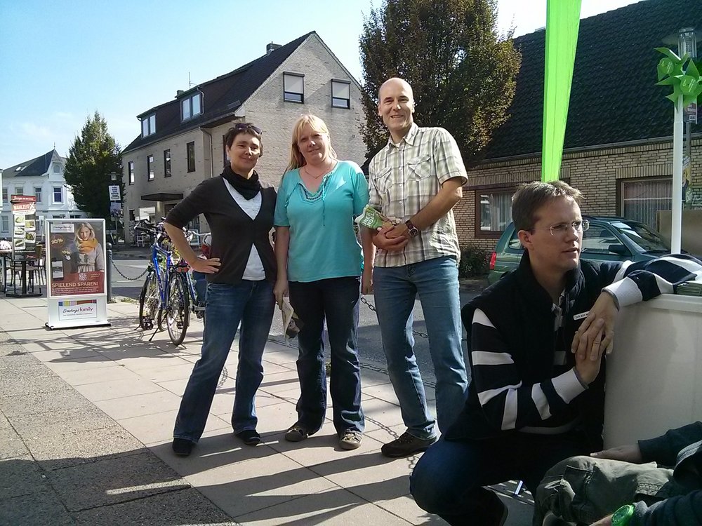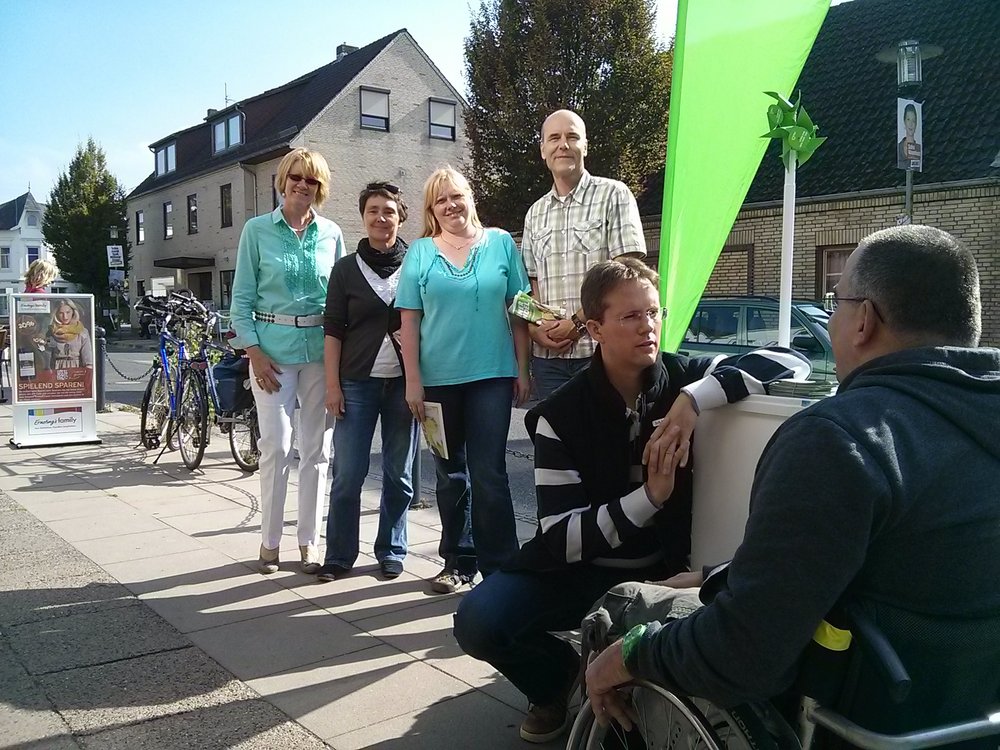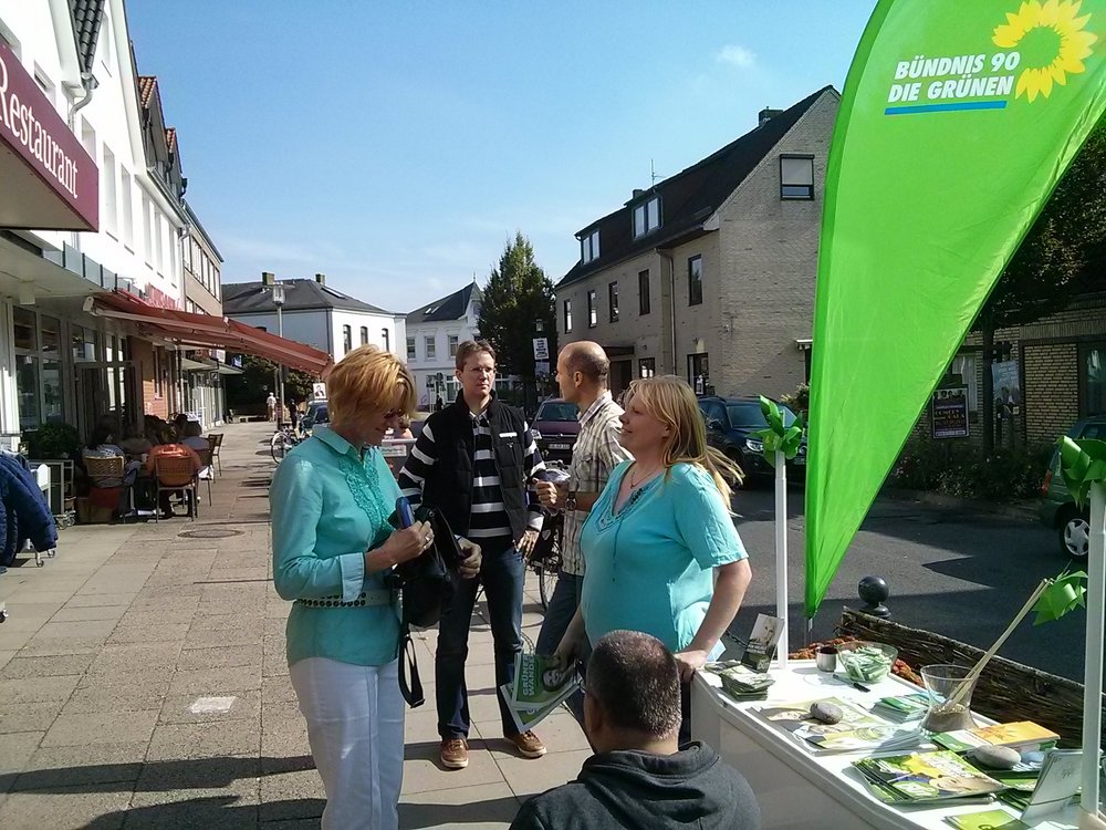 Bestes Wahlkampfwetter und entsprechend gute Laune herrschten am Infostand der GRÜNEN zur Bundestagswahl 2013. Sehr gelegen kam der Besuch der schleswig-holsteinischen Finanzministerin Monika Heinold, konnte sie doch kompetent auch über die umstrittenen Steuerpläne der GRÜNEN mit den Bürgerinnen und Bürgern diskutieren. Dabei konnte die Ministerin nochmal deutlich machen: 90% der Steuerzahler werden durch die grünen Steuerpläne entlastet und der Bundeshaushalt saniert.