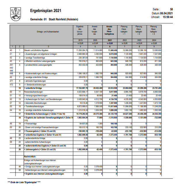 Gründe für das Defizit sind u.a. coronabedingte verringerte Einkommenssteueranteile, zusätzliche Belastungen aus der KiTa-Reform des Landes, einmalig erhöhte Aufwendungen für die Restrukturierung des IT-Verbundes Stormarn, die neben bisher schon defizitären kostenrechnenden Einrichtungen das Ergebnis belasten.