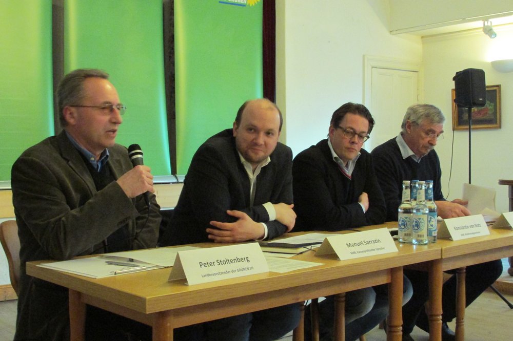 Um der Frage „Was wird aus dem ländlichen Raum?“ nachzugehen, hatte der Ortverband der GRÜNEN Reinfeld-Nordstormarn am Montagabend zu einem Themenabend in ländlichem Ambiente in das kleine Dorf Barnitz eingeladen. Viele Ideen und Gelder zur Förderung des ländlichen Raumes kommen aus Europa. „Häufig ist es den Bürgern gar nicht bewusst, welche positive Rolle die EU auch in unserer Region spielt“, so Manuel Sarrazin, europapolitischer Sprecher der GRÜNEN im Bundestag. Ein gutes Beispiel für EU-Projekte sind die AktivRegionen. Hartwig Knoche von der Aktiv Region Holsteins Herz, stellte einige spannende Projekte vor und verteidigte auch den vorab kritisierten Bürokratieaufwand, der mit jeder Projektbeantragung anfällt. Das aufwändige Verfahren garantiere letztendlich eine größtmögliche Transparenz bezüglich der Geldanlagen. Außerdem stellte er heraus, dass die Beteiligten bei der Projektentwicklung oft sehr konstruktiv arbeitende und dynamische Gemeinschaften gebildet hätten, die nur ein Ziel im Blick hätten: “Was können wir für unsere Region tun?“